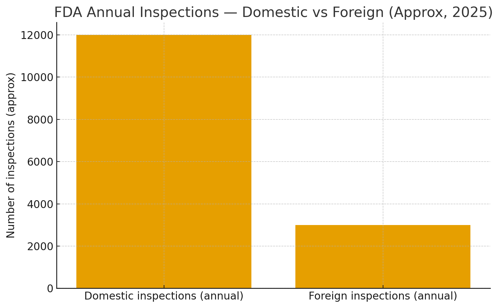 Quick visual: FDA inspection volumes, domestic vs foreign (approx, 20225)